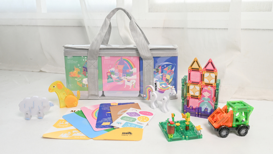 ✦ 從秘密基地到旅行冒險,開啟小小磁力片的升級之旅!2025年2月,MNTL推出小小磁力片系列「秘密基地 42pcs」 一上市就掀起熱潮,迷你版磁力片與小巧輕便的鐵盒包裝,收納與攜帶都方便,讓孩子能隨時隨地開啟創造力挑戰! 同時我們也收到許多家長回饋,希望可以推出更多小小磁力片系列與主題配件,帶給孩子更多驚奇與玩法體驗。2025年9月,小小磁力片「旅行冒險三件組」驚喜登場! 旅行,不一定要搭上飛機或火車才能開始。對孩子來說,只要有一點想像力,一場冒險就能從家裡展開。這一次,MNTL 為大家準備了一份特別的旅程邀請—— 《旅行冒險三件組 Traveller Combo》。這篇新品推薦將與你分享 新品亮點 與 小小磁力片常見Q&A ,快和我們一起踏上旅程✈️一、旅行冒險三件組:新品亮點組合內容三大主題與限定配件套組加贈:旅行好夥伴二、旅行冒險三件組 與 秘密基地 比較 三、小小磁力片常見Q&A ✦ 旅行冒險三件組 Traveller Combo ✦《旅行冒險三件組》不只是玩具,而是一份讓孩子「邊玩邊探索」的禮物。從田園的悠閒、童話的奇幻,到城市的繁華,每一次搭建,都是一次嶄新的旅行。 這組合一次集結三大人氣主題,每一款都像是一張通往新世界的門票:組合內容|田園牧場50pcs + 童話城堡50pcs + 霓虹街區50pcs 特別贈送|冒險旅行袋1pc + MNTL旅行護照組 ( 護照筆記本1pc + 旅人明信片3pcs + 旅程紀念貼1pc ) ✦ 三大風景主題&限定配件|田園牧場、童話城堡、霓虹街區 田園牧場 Country Farm 50pcs 溫暖飽和的經典配色,和小動物們開啟農場生活! |亮點介紹|小小積木好朋友 - 結合積木與磁力片的特性,搭配樂高、得寶積木,玩出更細膩的場景互動。 - 每片皆為單面有積木顆粒,亦可與大片積木好朋友一起玩! - 點我看更多 童話城堡 Fairy Tale Castle 50pcs 柔和夢幻的粉彩配色,打造童話般的小小公主城堡。 |亮點介紹|童話公主&彩虹獨角獸 - 童話角色新登場!公主及獨角獸腳底附有磁力,可吸附磁力片。 - 彩虹獨角獸雙腳可自由轉動,場景故事更生動。 - 點我看更多 霓虹街區 Neon Block 50pcs 亮眼的螢光與潮流黑色,打造酷炫的夜晚街頭風格。 |亮點介紹|小小駕駛員&奇幻螢光 - 駕駛員也有迷你款了!小小駕駛員陪你一起出遊冒險。 - 螢光系列建議加購「神奇魔幻紫光燈」,有意想不到的發光效果! - 點我看更多 ✦ 套組加贈旅行好夥伴|冒險旅行袋+MNTL旅行護照組 MNTL旅行護照組(護照筆記本1pc + 旅人明信片3pcs + 旅程紀念貼1pc) 風景主題明信片,可放入鐵盒一起玩,創造孩子專屬的旅程風景。 紀念貼紙與精美筆記本紀錄下旅程的美好回憶! 冒險旅行袋 整理&攜帶一次搞定,放入磁力片、護照、蠟筆,隨時出發去冒險! ✦ 「旅行冒險三件組」與「秘密基地」有什麼不同? ✦小提醒:若為第一次入手磁力片,建議選擇7.5cm常規尺寸磁力片。< 詳見Q&A-8 > ✦ 小小磁力片 常見Q&A ✦ Q1: 旅行冒險三件組能否自行挑選組合內容? A1: 旅行冒險三件組內容物為固定組合,恕不提供更換組合內容,若有單盒需求可以前往單盒商品頁購買喔!<小小磁力片系列>Q2: 是否有單售主題配件(童話公主/彩虹獨角獸/小小駕駛員/小小積木好朋友)? A2: 旅行冒險三件組內含配件皆為限定款,尚無單獨販售配件。Q3: 小小磁力片可以和常規尺寸磁力片一起玩嗎? A3: 小小磁力片為常規尺寸的𝟭/𝟰、兩者厚度皆為𝟬.𝟳𝗰𝗺,一起玩更有趣,玩法更多元!<作品參考:甜點販賣部>Q4: 為什麼小小磁力片的磁鐵條變小了? A4: 因磁鐵同極相斥的特性,我們特意將磁鐵條變小塊,讓磁鐵有足夠空間旋轉、調整正負極,讓孩子更容易拼搭、創作,也能提升遊玩體驗!<參考社群貼文>Q5: 磁鐵條變小,磁力會變弱嗎? A5: 與大塊磁力片相比,小小磁力片雖然對磁鐵條進行了調整,但仍能穩固吸附自體6片。 在磁力強弱的設定上,我們選擇了適中的磁力,既能確保拼搭的穩固性,又不會讓孩子難以拆開,讓遊戲更流暢、更安全。<參考社群貼文>Q6: 小小磁力片無法疊吸正常嗎? A6: 是正常的喔!原因為常規尺寸與小小磁力片尺寸的磁鐵邏輯設計不同,常規尺寸的NS極在磁力片的邊緣,因此可以互相疊吸;小小磁力片為克服磁極相斥問題,因此有調整內部空間大小,讓磁鐵可以在片內旋轉。也因此,當兩兩磁鐵旋轉完全貼合相吸時,後續疊加的磁力片可能無法吸附上去。Q7: 若小小磁力片內的磁鐵已經吸在一起了,後續的磁力片無法疊吸的話怎麼辦呢? A7: 別擔心,此為物理正常現象,並不影響使用。若有連續疊吸需求,可以將磁力片展開重新疊吸一次,讓內部磁鐵旋轉即可達到疊吸效果。Q8: 我第一次購買磁力片,要選擇常規的大磁力片還是小小磁力片? A8: 若為初次購買建議選擇常規磁力片(7.5cm)。因為體積、磁鐵條較大,拼接時吸附更穩固,對於手部抓握力還在發展的孩子來說,玩樂時較不易倒塌或歪斜,降低挫折感。待孩子理解磁力片的連接方式、能熟練控制手部動作後,再挑戰小小磁力片,就能玩出更多細緻的造型與細節。✦ 更多造型玩法IG搜尋>> @mntl.taiwan